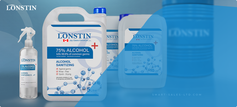Антисептик всемирно известного канадского бренда косметики. Произведен из этилового медицинского спирта, что является основным отличием и главным преимуществом перед другими антисептиками, основу которых составляет технический изопропиловый спирт. Содержание этилового спирта в антисептике ЛОНСТИН составляет 75%. Состав соответствует рекомендациям ВОЗ и включает в себя: спирт этиловый 75%, глицерин, перекись водорода, витамин Е.